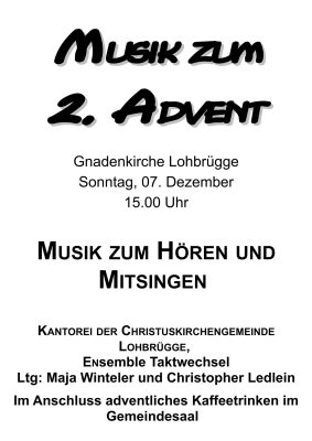 Musik zum 2. Advent, . Dezember 15 Uhr in der GNADENKIRCHE